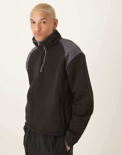 ASOS DESIGN – Czarny sweter o pudełkowym kroju oversize z polaru z kontrastowymi nylonowymi wstawkami