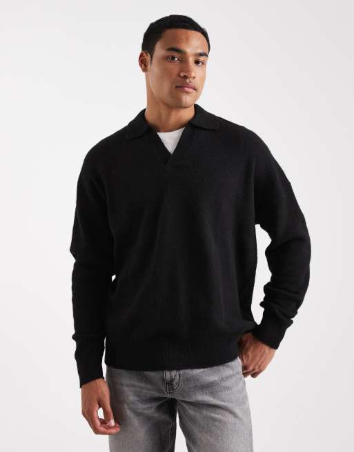 ASOS DESIGN – Czarny sweter oversize ze szczotkowanej dzianiny z wycięciem w dekolcie
