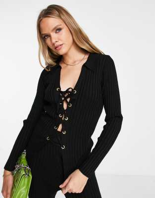 ASOS DESIGN – Czarny sweter z ozdobnym sznurowaniem i kołnierzem, część zestawu