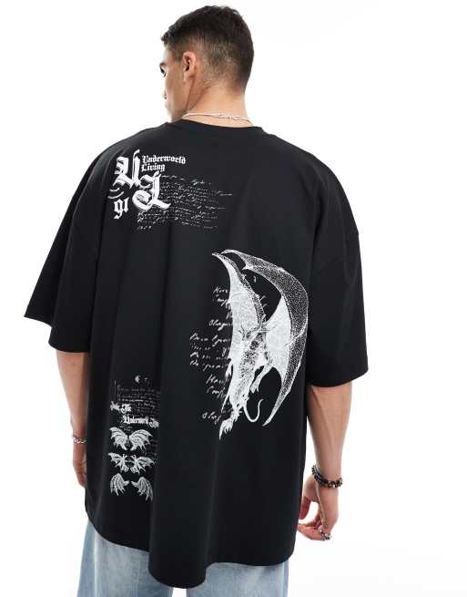 ASOS DESIGN – Czarny T-shirt extreme oversize z nadrukami z motywem grunge