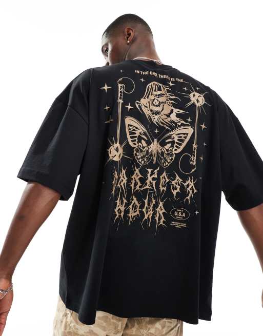 ASOS DESIGN – Czarny T-shirt extreme oversize z nadrukiem z motywem grunge na plecach