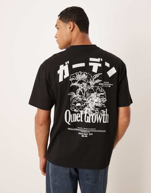 ASOS DESIGN – Czarny T-shirt o luźnym kroju z ozdobnym nadrukiem