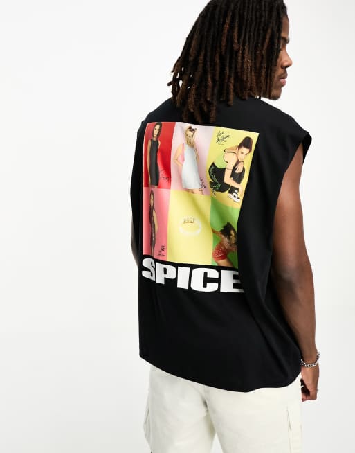 ASOS DESIGN – Czarny T-shirt oversize bez rękawów z nadrukiem spice Girls