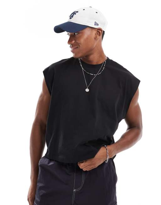 ASOS DESIGN – Czarny T-shirt oversize o krótkim fasonie bez rękawów