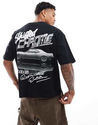 ASOS DESIGN – Czarny T-shirt oversize o pudełkowym kroju z nadrukiem samochodu na plecach