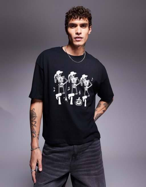 ASOS DESIGN – Czarny T-shirt oversize o pudełkowym kroju z nadrukiem z motywem Halloween