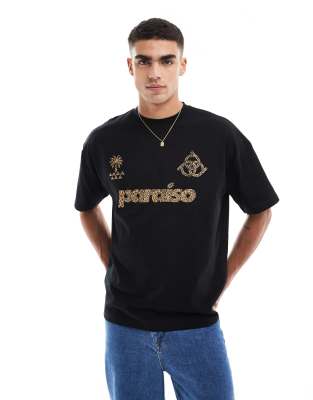 ASOS DESIGN – Czarny T-shirt oversize z cętkowanym nadrukiem i napisem „Paraiso” z przodu