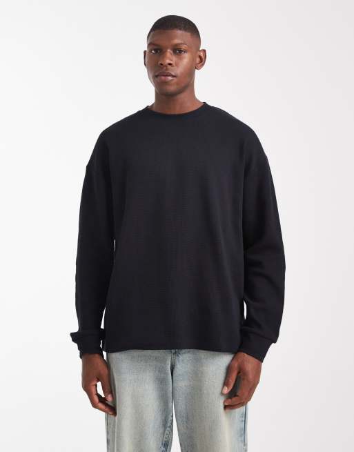 ASOS DESIGN – Czarny T-shirt oversize z długimi rękawami o fakturze wafla