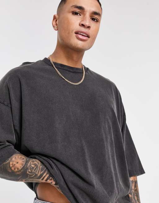 ASOS DESIGN – Czarny t-shirt oversize z mieszanki bawełny z efektem sprania – BLACK