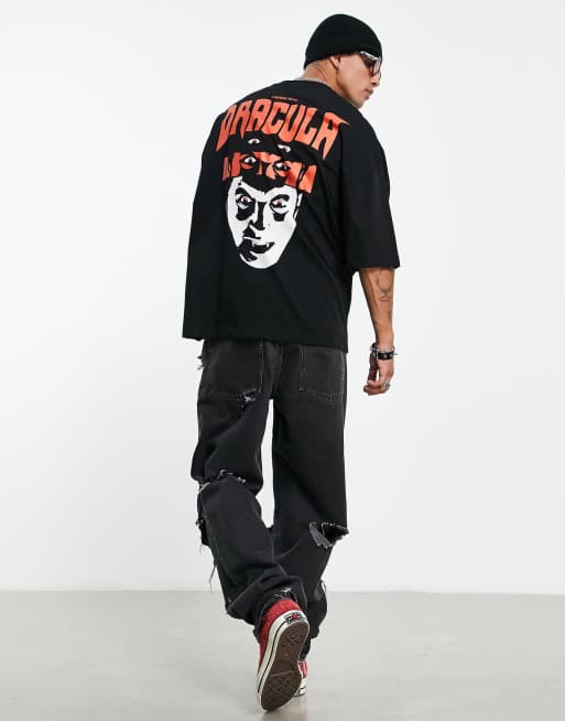 ASOS DESIGN – Czarny T-shirt oversize z nadrukiem Draculi