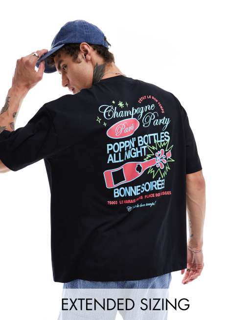 ASOS DESIGN – Czarny T-shirt oversize z nadrukiem na plecach
