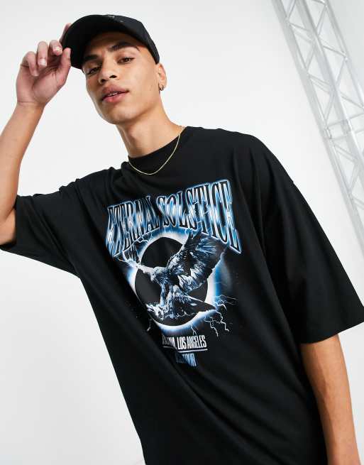 ASOS DESIGN – Czarny T-shirt oversize z nadrukiem z motywem zespołu z przodu i na plecach