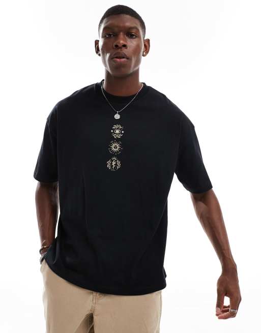ASOS DESIGN – Czarny T-shirt oversize z nadrukiem w gwiazdy na plecach