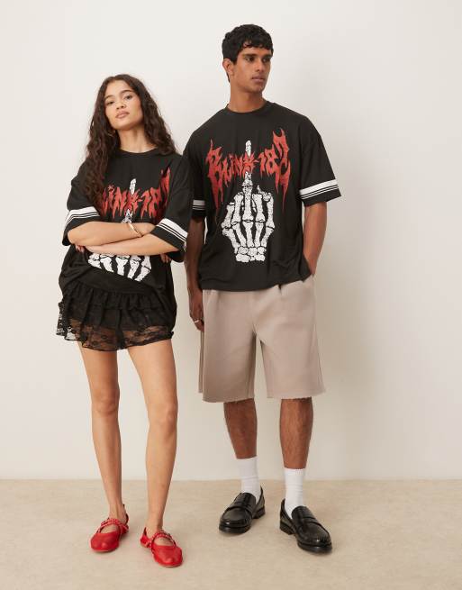 ASOS DESIGN – Czarny T-shirt sportowy unisex oversize z nadrukiem zespołu Blink 182
