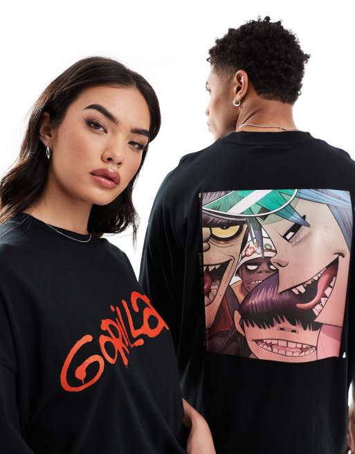 ASOS DESIGN – Czarny T-shirt unisex o fasonie oversize z licencjonowaną grafiką zespołu Gorillaz
