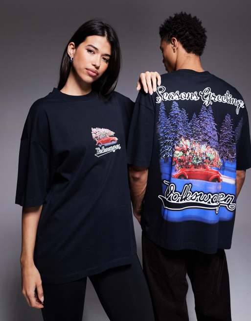 ASOS DESIGN – Czarny T-shirt unisex o kroju oversize z świątecznym nadrukiem Volkswagena