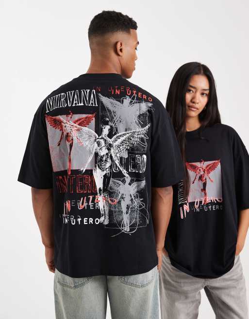 ASOS DESIGN – Czarny T-shirt unisex o fasonie oversize z nadrukiem zespołu Nirvana