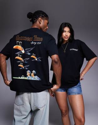 ASOS DESIGN – Czarny T-shirt unisex oversize z nadrukami Guinness