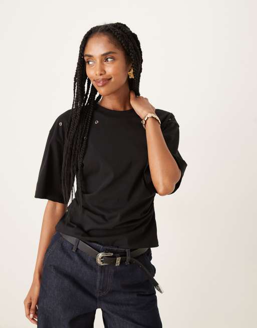 ASOS DESIGN – Czarny T-shirt z gorsetową talią i ozdobnymi ćwiekami
