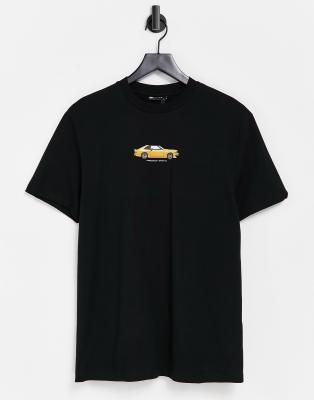 ASOS DESIGN – Czarny T-shirt z nadrukiem samochodu