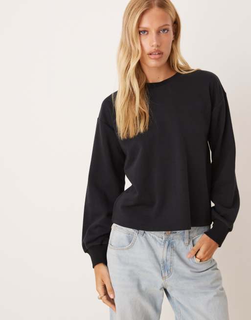 ASOS DESIGN – Czarny top zbierany w talii z pętelkowym wykończeniem od spodu