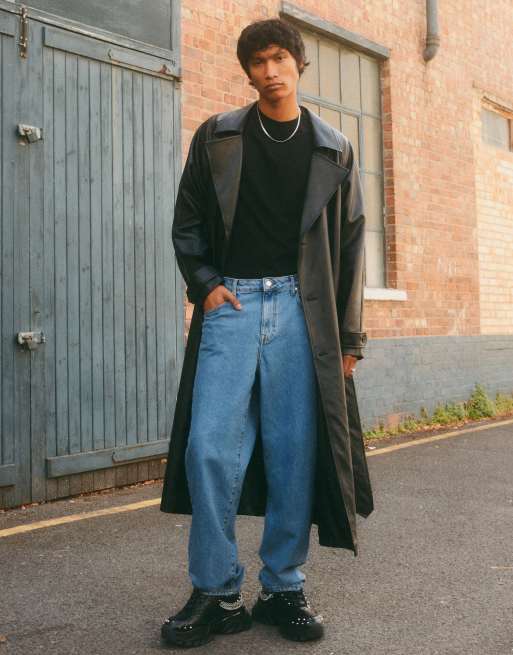 ASOS DESIGN – Czarny trencz oversize z imitacji skóry