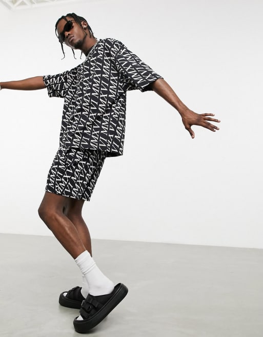 ASOS DESIGN – Czarny zestaw z nadrukiem cyfr rzymskich na całej powierzchni