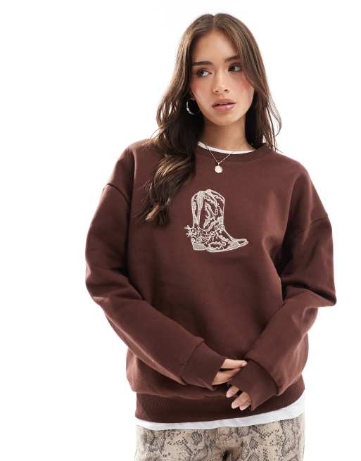 ASOS DESIGN – Czekoladowa bluza dresowa oversize z grafiką z butem kowbojskim