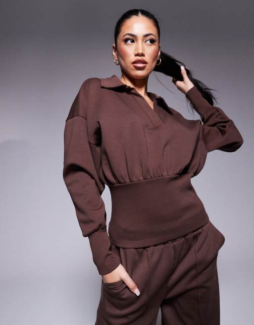 ASOS DESIGN – Czekoladowa bluza zbierana w talii ze szwami interlock