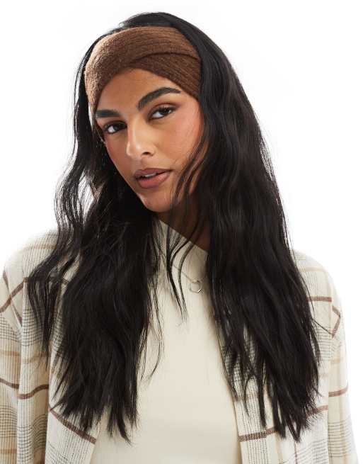ASOS DESIGN – Czekoladowa dzianinowa opaska na głowę ze skrzyżowanym detalem