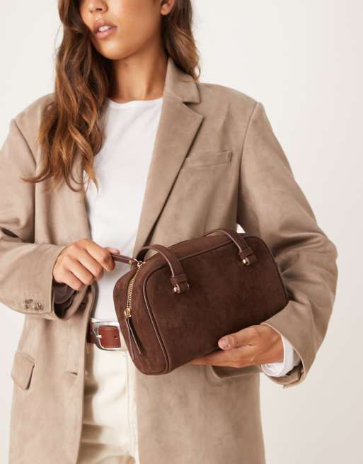 ASOS DESIGN – Czekoladowa pudełkowa torebka na ramię z imitacji zamszu