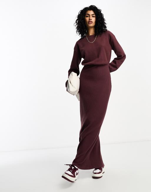 ASOS DESIGN – Czekoladowa sukienka maxi z długim rękawem i zabudowanym dekoltem