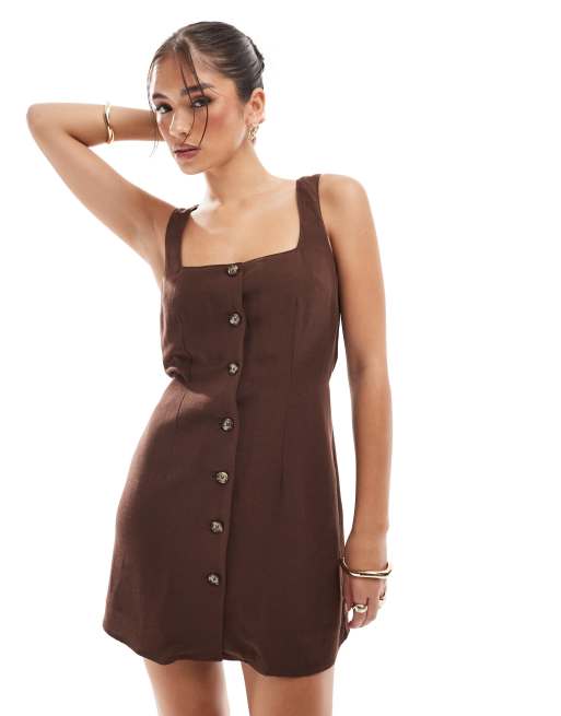 ASOS DESIGN – Czekoladowa sukienka mini o fasonie kamizelki z kwadratowym dekoltem