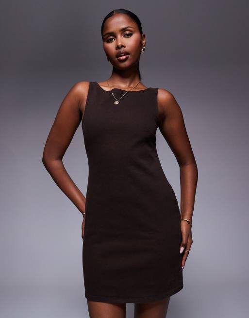 ASOS DESIGN – Czekoladowa sukienka mini z denimu ze stretchem z ozdobnymi przeszyciami