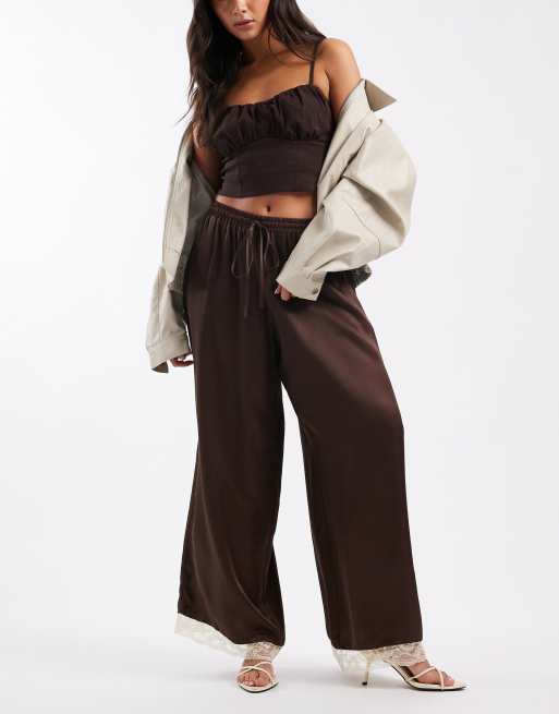 ASOS DESIGN – Czekoladowe satynowe spodnie z bufiastym dołem