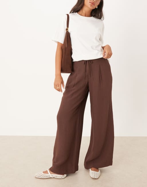 ASOS DESIGN – Czekoladowe spodnie z szerokimi nogawkami o miękkiej fakturze