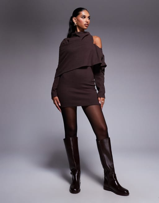 ASOS DESIGN – Czekoladowobrązowa bardzo miękka sukienka mini z drapowaną narzutką z wycięciem