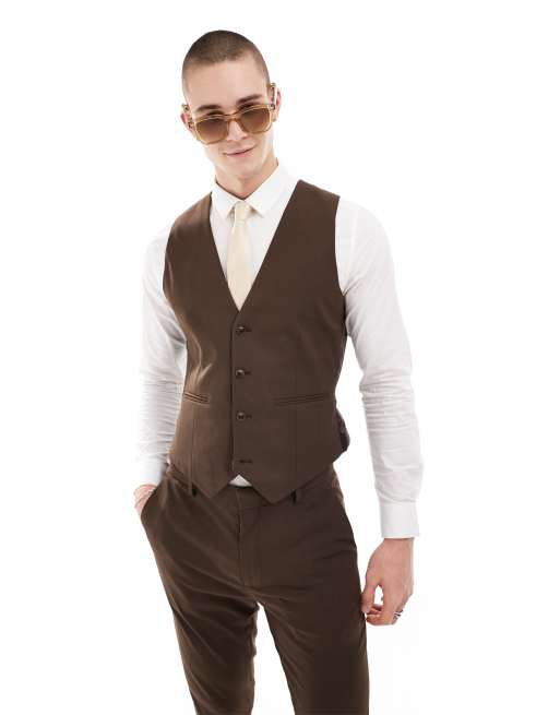 ASOS DESIGN – Czekoladowobrązowa kamizelka garniturowa o obcisłym kroju