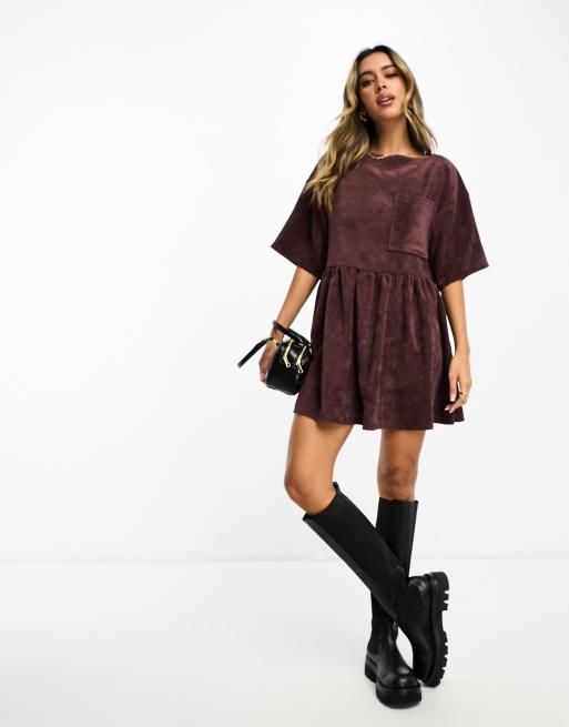 ASOS DESIGN – Czekoladowobrązowa sztruksowa sukienka t-shirtowa