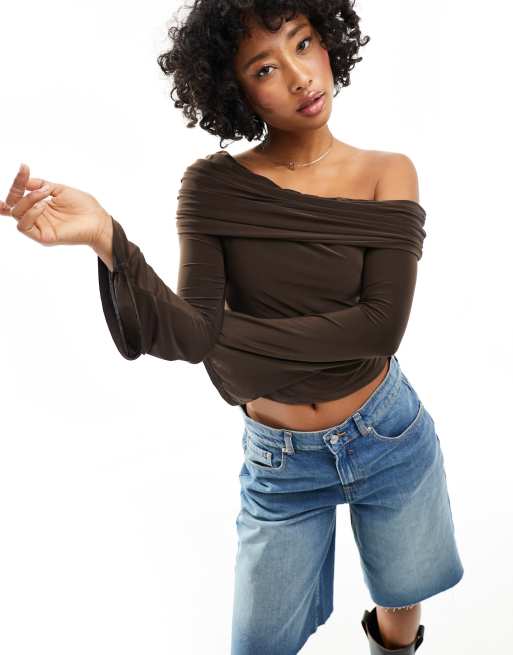 ASOS DESIGN – Czekoladowy lejący top na jedno ramię