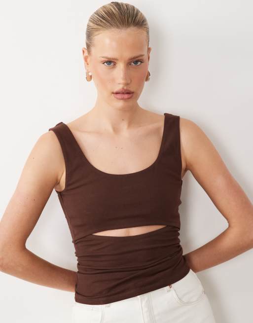 ASOS DESIGN – Czekoladowy podkoszulek z wycięciem
