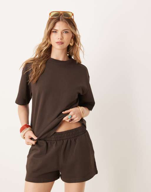 ASOS DESIGN – Czekoladowy T-shirt dresowy o pudełkowym kroju, część zestawu