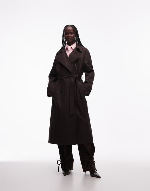 ASOS DESIGN – Czekoladowy wodoodporny prochowiec o wydłużonym fasonie