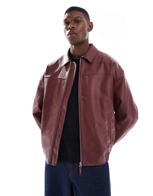 ASOS DESIGN – Czerwona kurtka bomberka z imitacji skóry