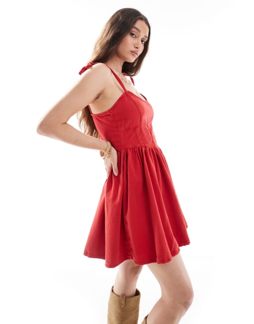 ASOS DESIGN – Czerwona miękka sukienka jeansowa mini w stylu baleriny