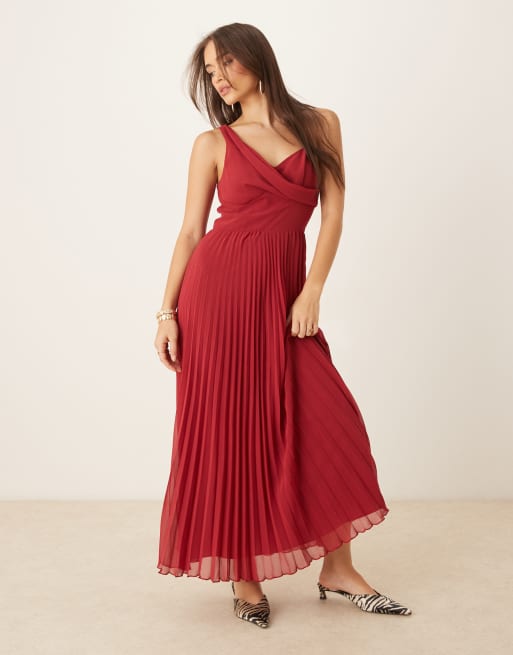 ASOS DESIGN – Czerwona plisowana sukienka midi na ramiączkach z drapowaną górą