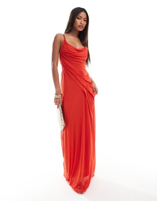 ASOS DESIGN – Czerwona siateczkowa sukienka maxi na ramiączkach z ozdobnymi szwami