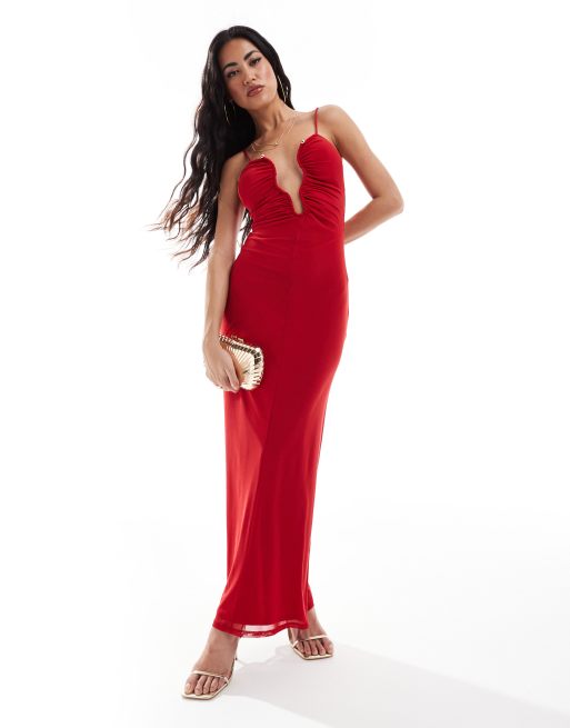 ASOS DESIGN – Czerwona siateczkowa sukienka midi na ramiączkach z zaokrąglonym dekoltem
