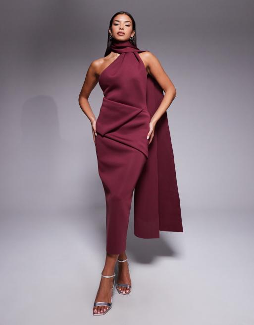 ASOS DESIGN – Czerwona sukienka maxi z ozdobnym szalem z materiału w stylu scuba