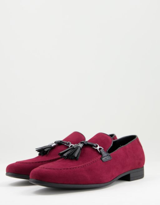 ASOS DESIGN – Czerwone loafersy z imitacji skóry z frędzlami